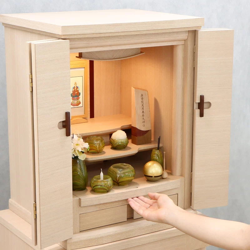 こちらの商品は5年間の製品保証が付きます。自然に使用していて発生した問題に関しては、すべて無料で修理を行わせて頂いております。その際のご依頼は「お仏壇の5年保証期間内の修理依頼【0円修理】」のページよりお申込み下さい。