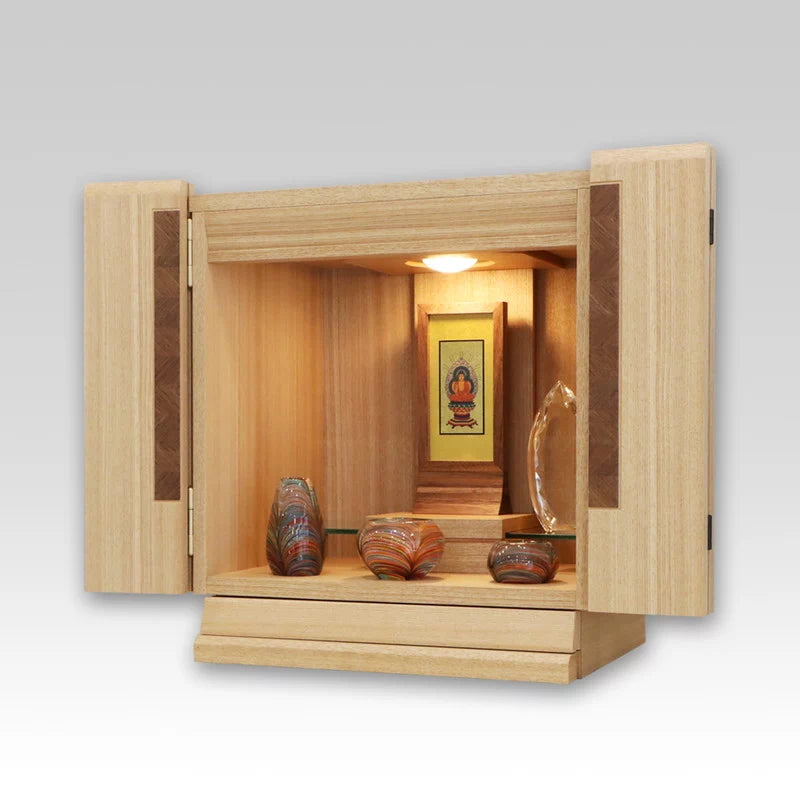 美しくもやさしい天然木の風合いが、従来の唐木仏壇やモダンな仏壇にも調和します。