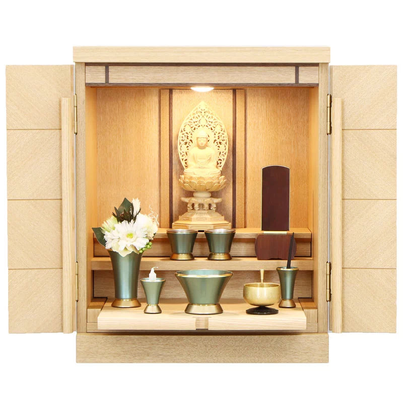 上品なパール調のグリーンカラーは、お仏壇をぱっと明るく演出してくれまます。