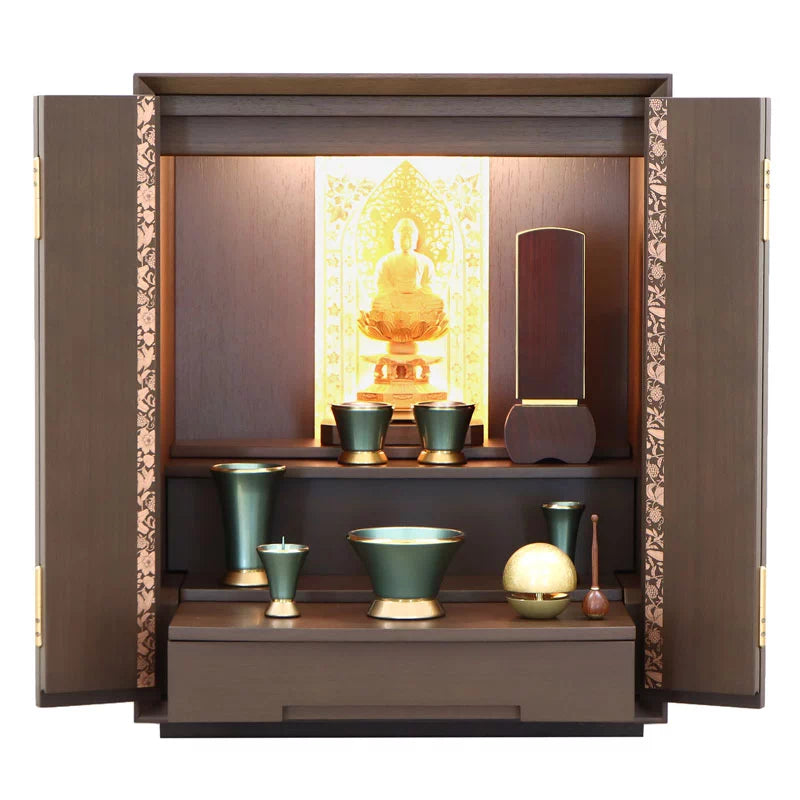 仏具によって荘厳(しょうごん)して初めてお仏壇としての意味を持ちます。仏具はご本尊を供養するのと共に、ご先祖様や亡き人を供養するためのものです。