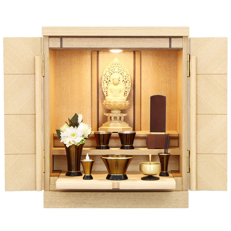 仏具によって荘厳(しょうごん)して初めてお仏壇としての意味を持ちます。仏具はご本尊を供養するのと共に、ご先祖様や亡き人を供養するためのものです。