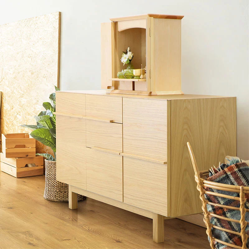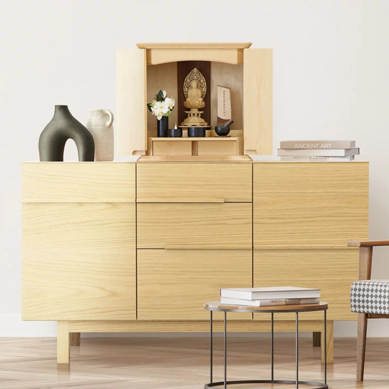 オークの木目を活かしたシンプルな佇まいが、お仏壇をモダンに演出します。
