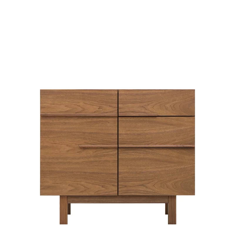 • 特 徴: 7寸骨箱収納可能 、 板目のランダムな木目 、 スライドレールあり 、 脚付き 、 引き出し収納×3