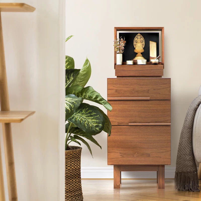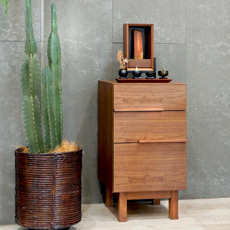 ウォールナットの木目を活かしたシンプルな佇まいが、お仏壇をモダンに演出します。