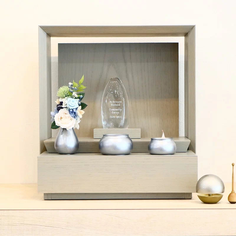 ⑥花立て・・・左の下の段に置きます。常花や生花を供える際に使用します。常花には「ブリザーブドフラワー」がオススメです。