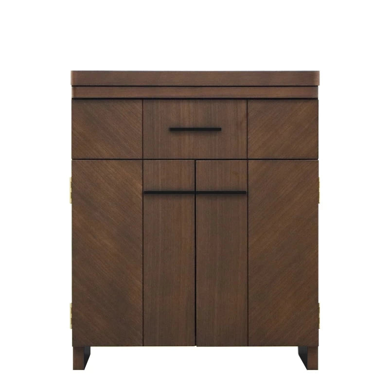 扉には、木目の向きを交互に組み合わせた「矢羽根貼り」という突板の手法が使われておりさりげない市松模様が施されています。また取っ手のデザインもシンプルに様々なお仏壇にマッチします。