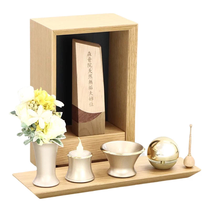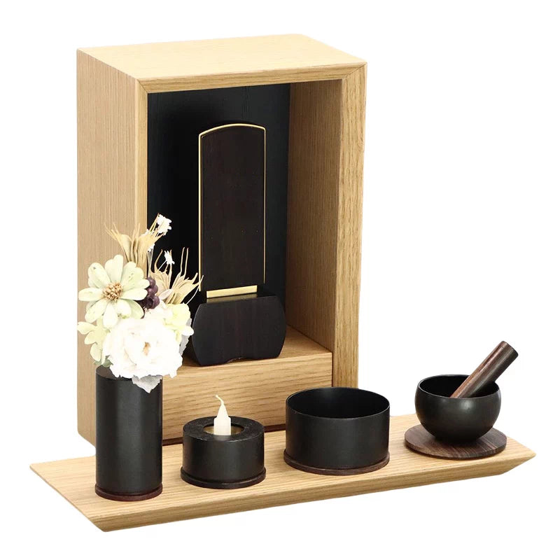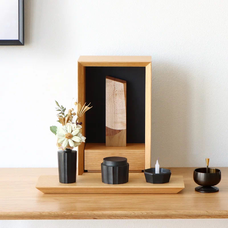 手元供養に最適な当店オリジナルの国産ミニ仏壇。オーク×ブラックのモダンなデザインです。