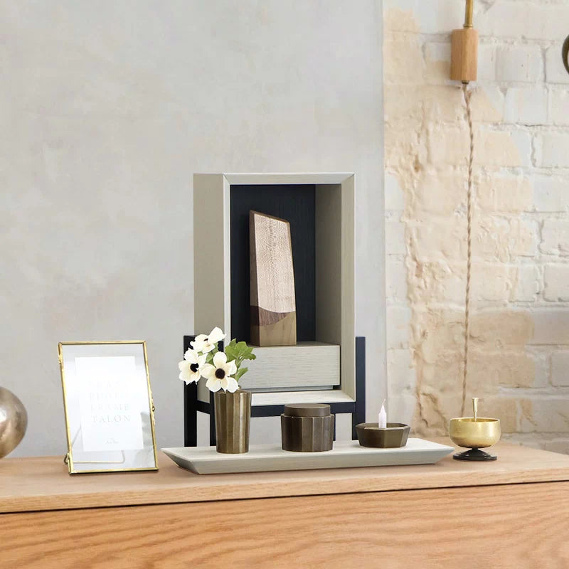 手元供養に最適な当店オリジナルの国産ミニ仏壇。グレー×ブラックのモダンなデザインです。