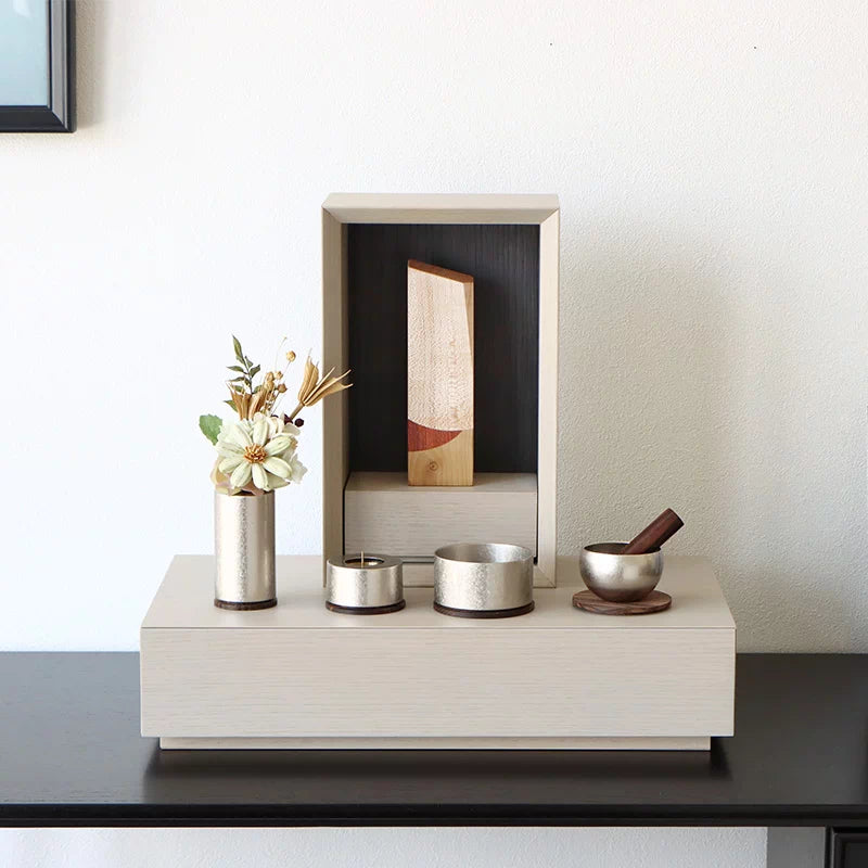 手元供養ステージ FLOAT 収納付きタイプ 錫色×墨黒色
