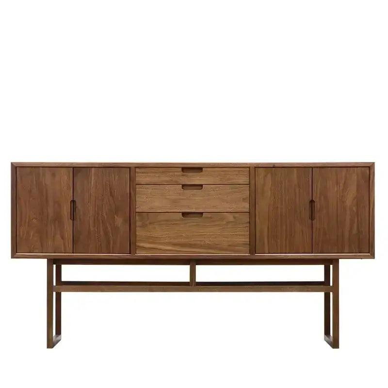 ウォールナットの美しい木目のデザインで、大容量の収納スペースを備えるリビングボード。