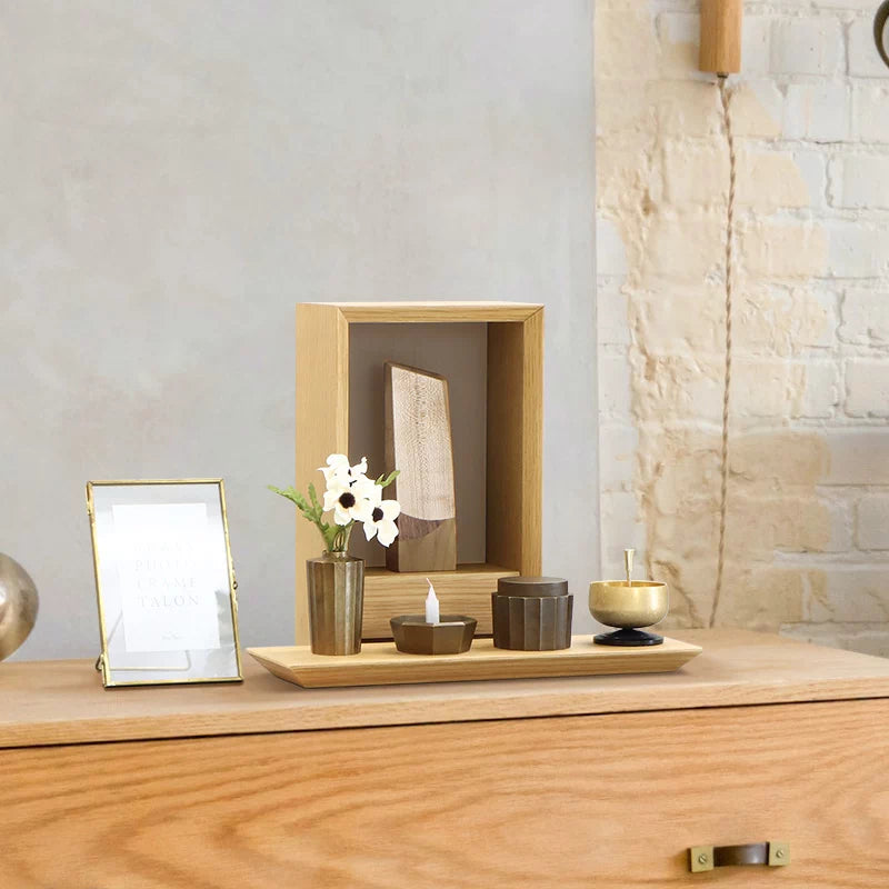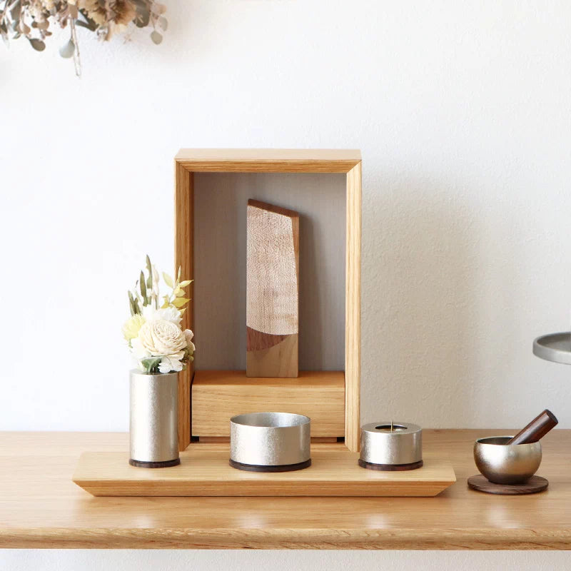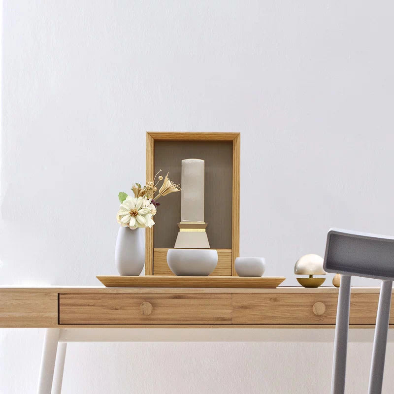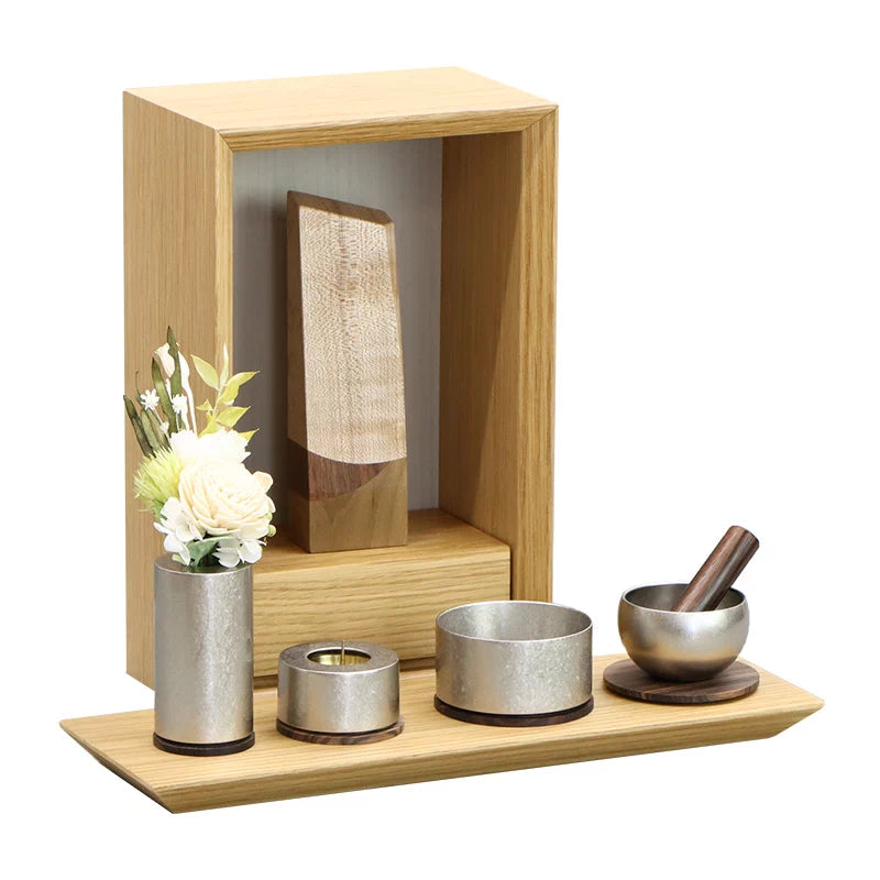 手元供養に最適な当店オリジナルの国産ミニ仏壇。オーク×グレーのモダンなデザインです。