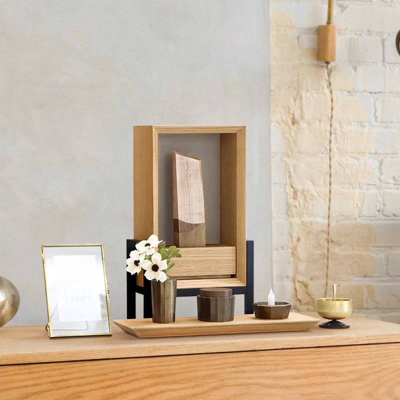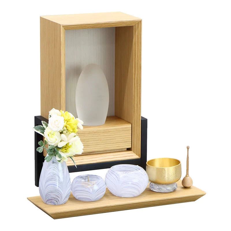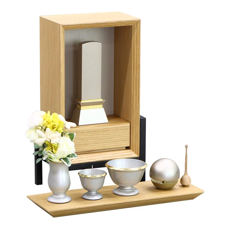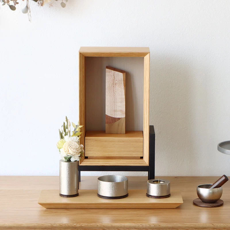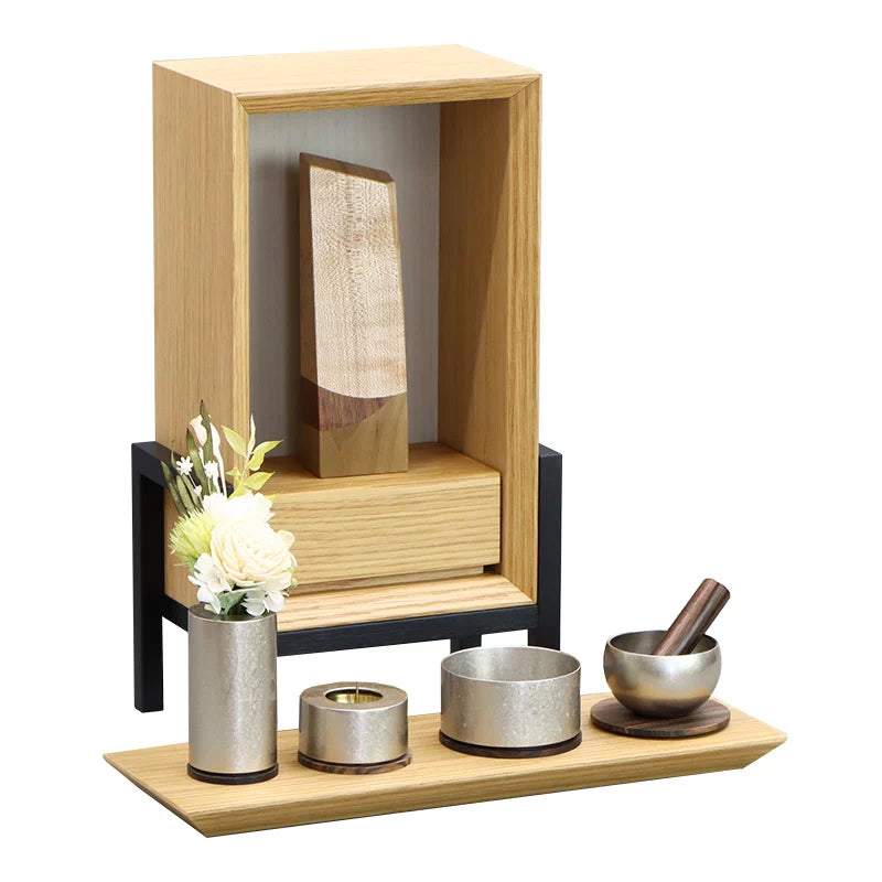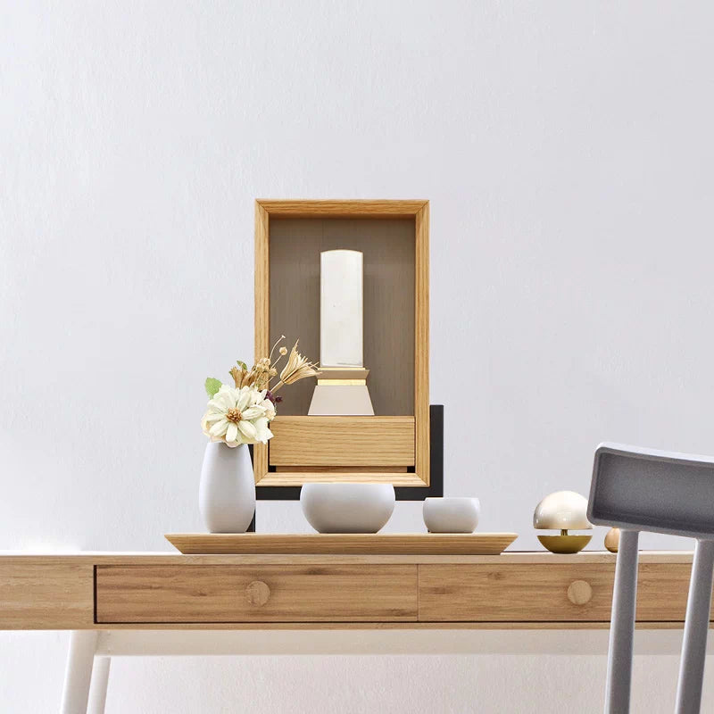 手元供養に最適な当店オリジナルの国産ミニ仏壇。オーク×グレーのモダンなデザインです。