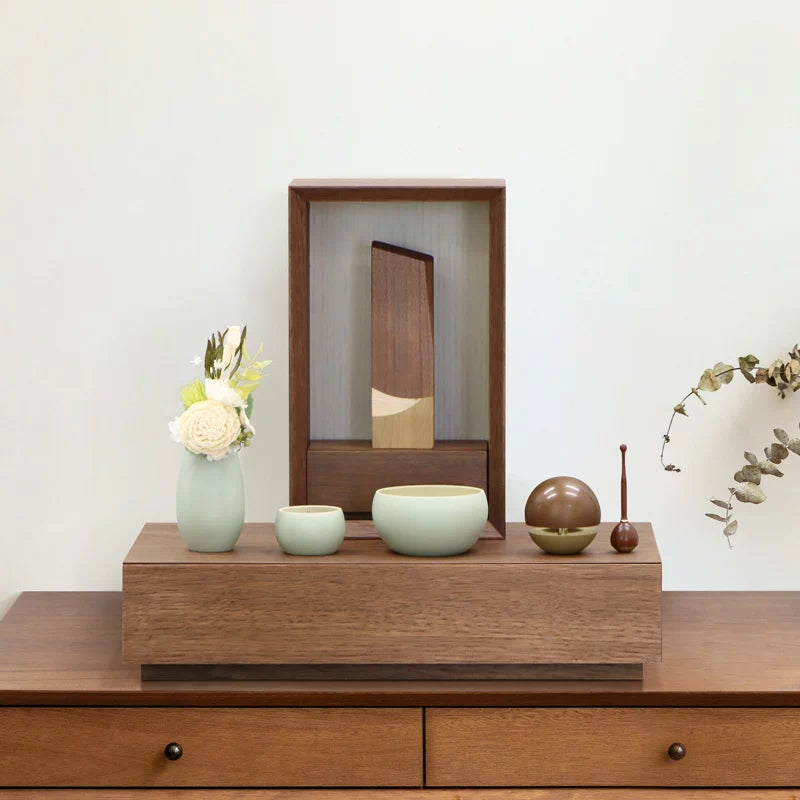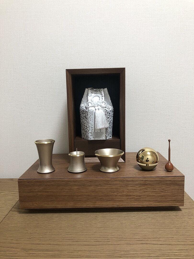 手元供養に最適な当店オリジナルの国産ミニ仏壇。ウォールナット×グレーのモダンなデザインです。