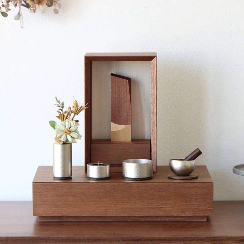 手元供養ステージ FLOAT 収納付きタイプ ウォールナット×錫色