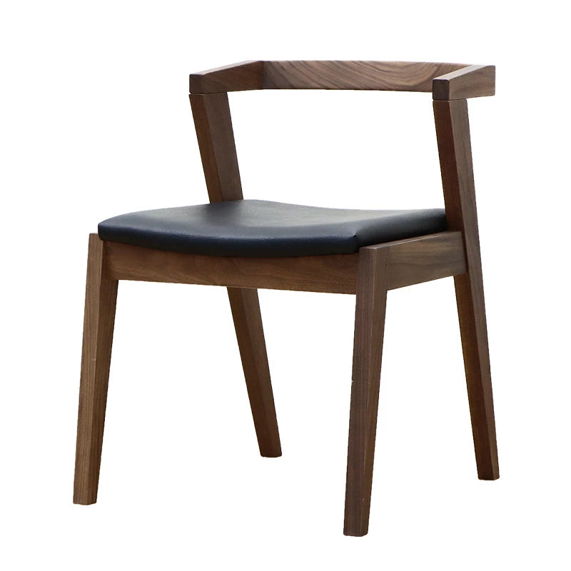 無垢材とレザーの組み合わせがモダンな国産チェア。椅子の出し入れがスムーズな設計です。