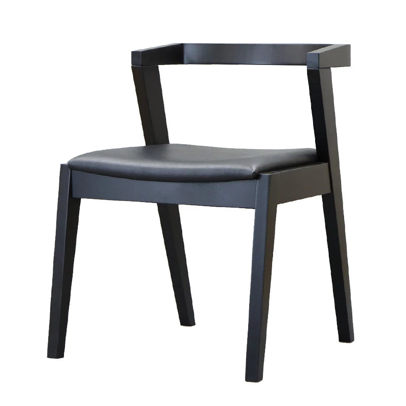 低めの背もたれと滑らかな笹木のカーブが手に自然と馴染み、椅子の出し入れがしやすい設計です。