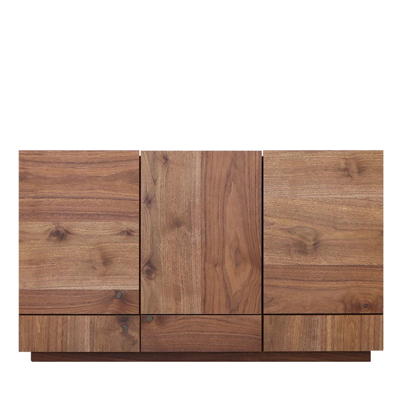 突板の木目を互い違いに配置した、シンプルながらも遊び心のあるサイドボード。