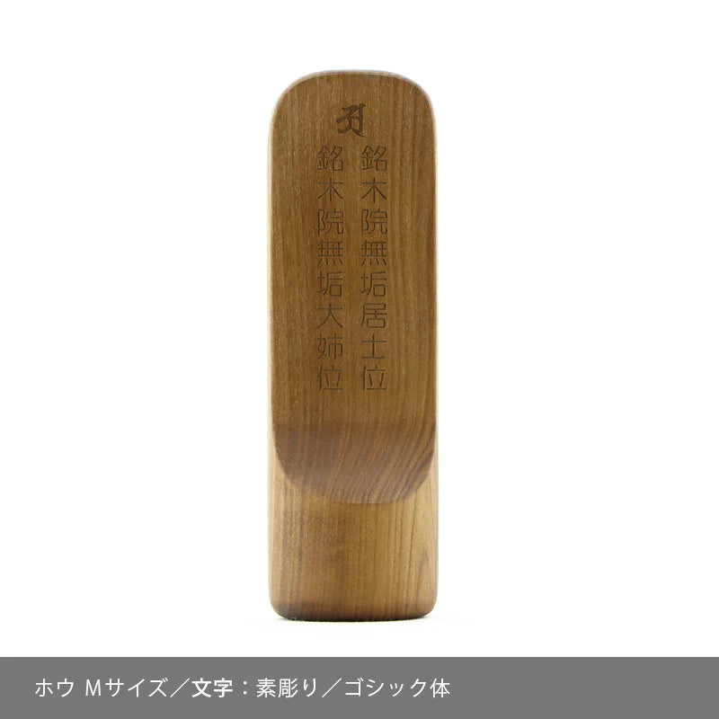 世界の銘木を使用した無垢の位牌。丸みを帯びた優しい印象のシンプルな佇まいです。