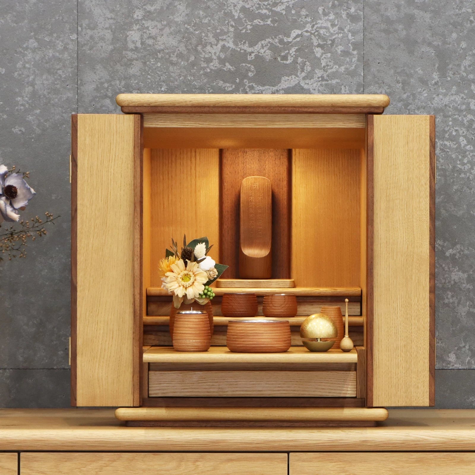 世界の銘木を使用した無垢の位牌。丸みを帯びた優しい印象のシンプルな佇まいです。