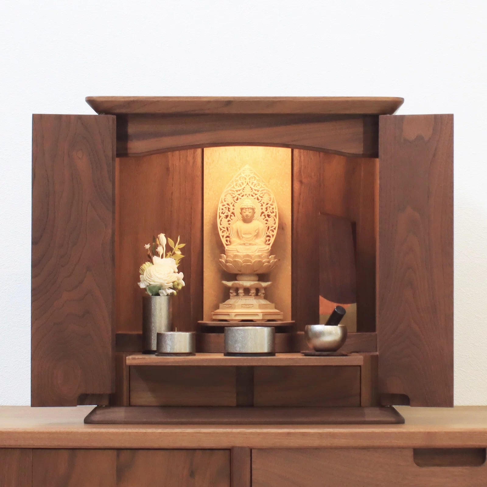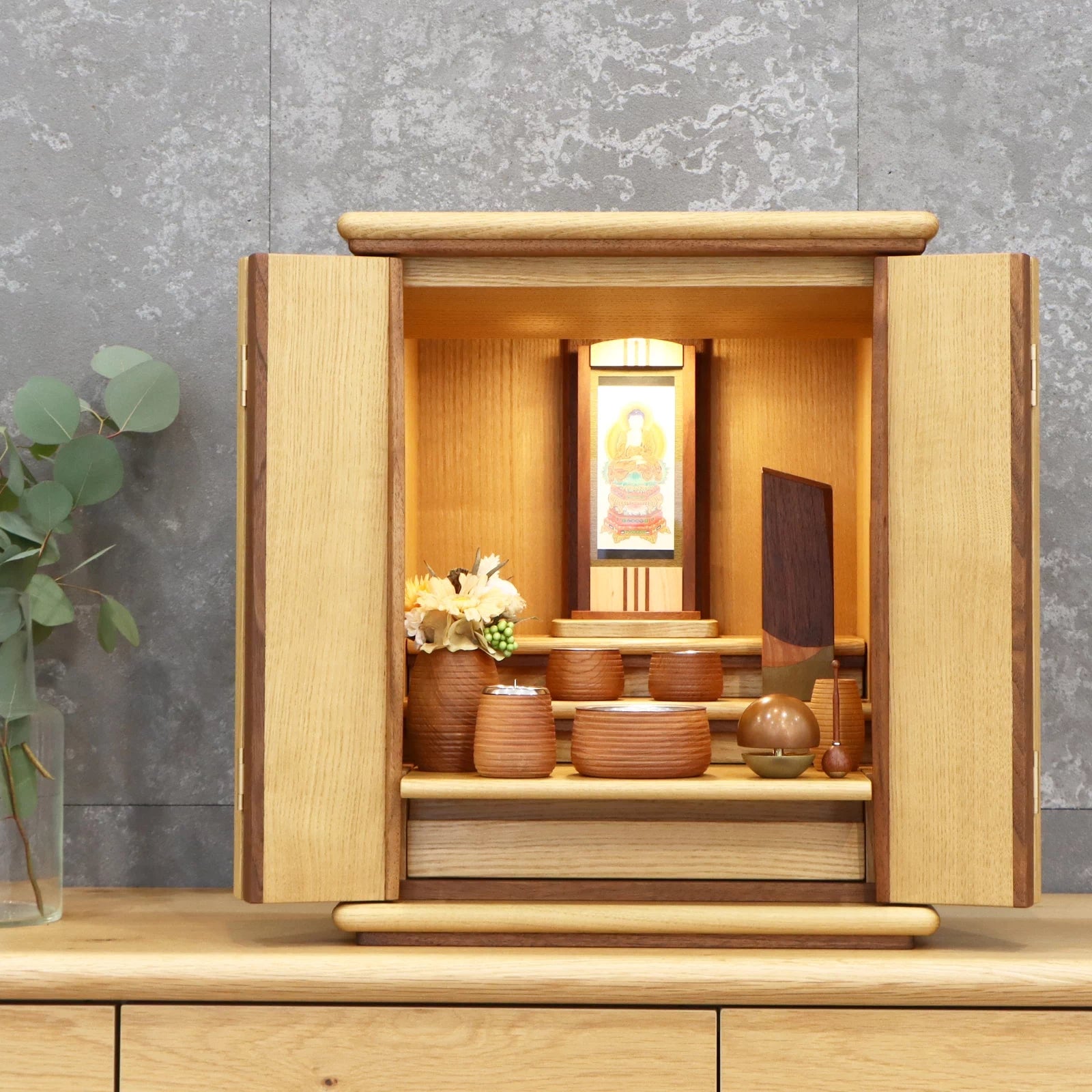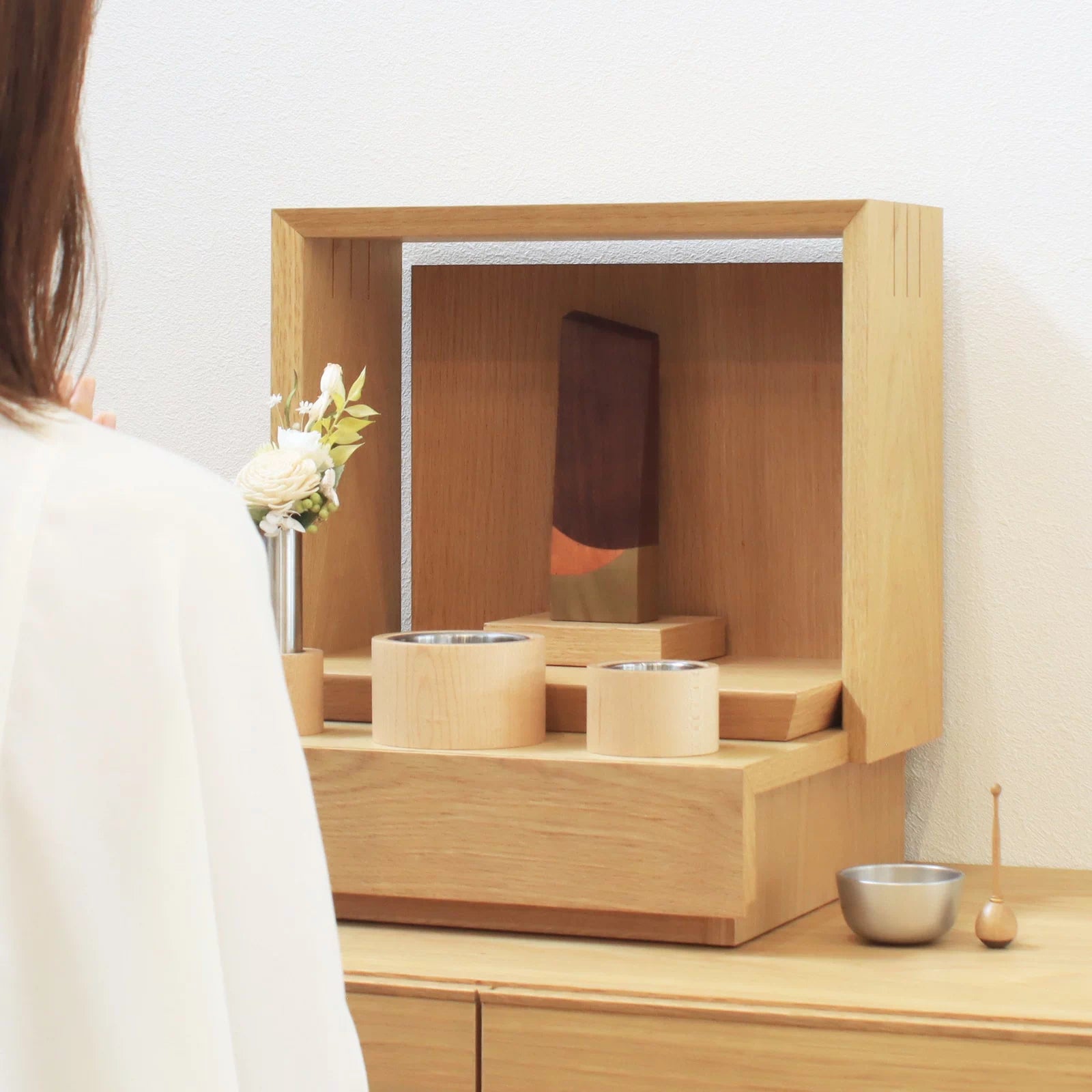 寄木の位牌「森音」は、そんな形式に囚われないあたたかみのある祈りの空間を演出します。