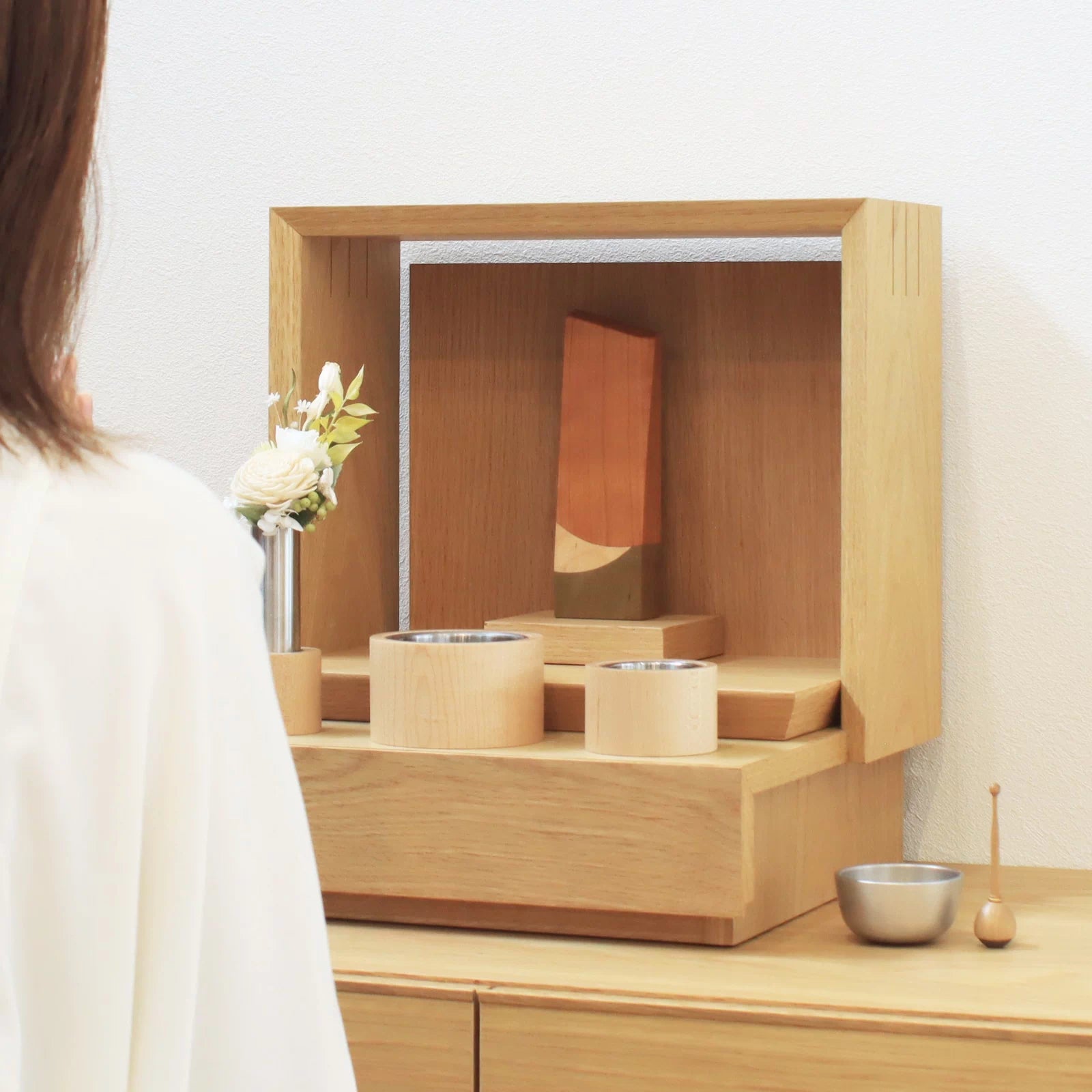 寄木の位牌「森音」は、そんな形式に囚われないあたたかみのある祈りの空間を演出します。