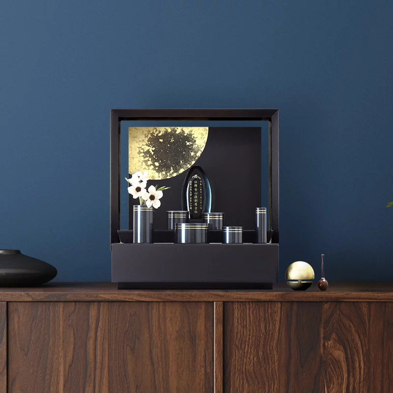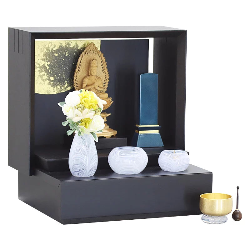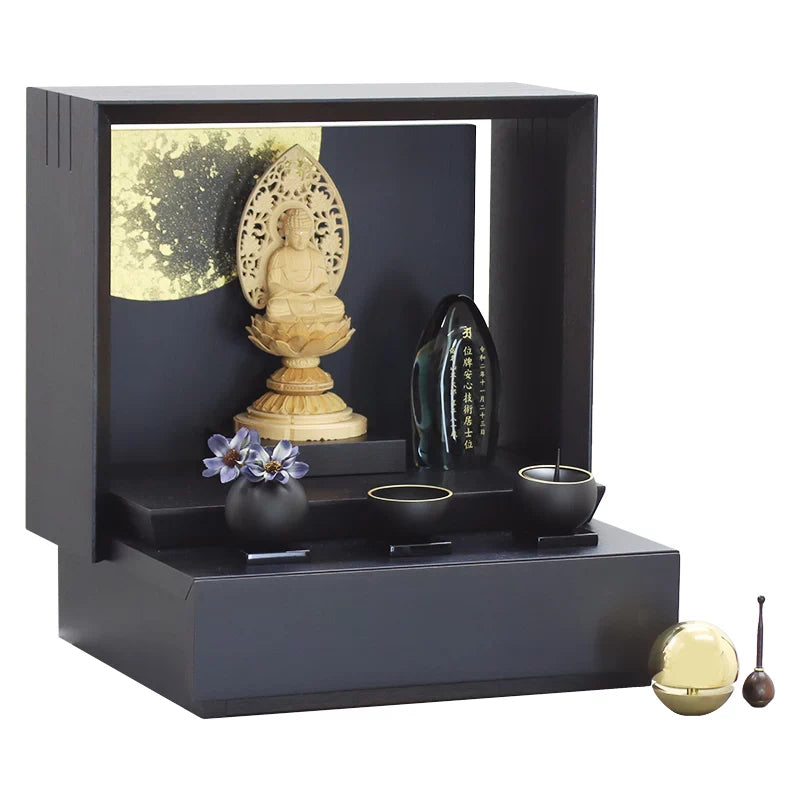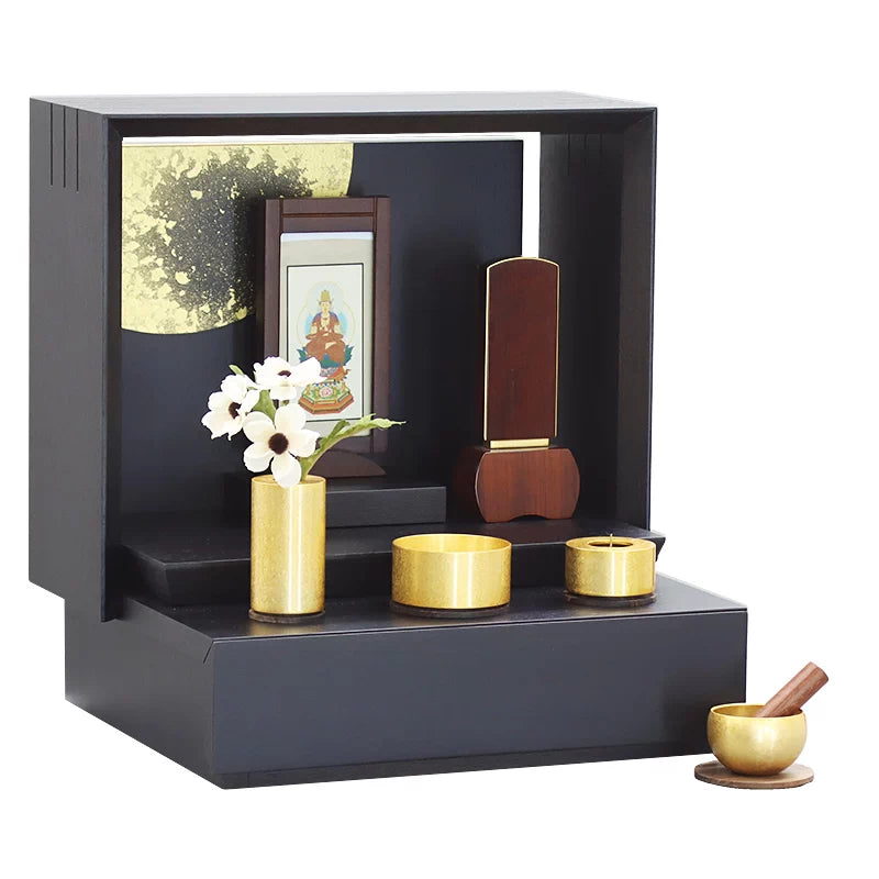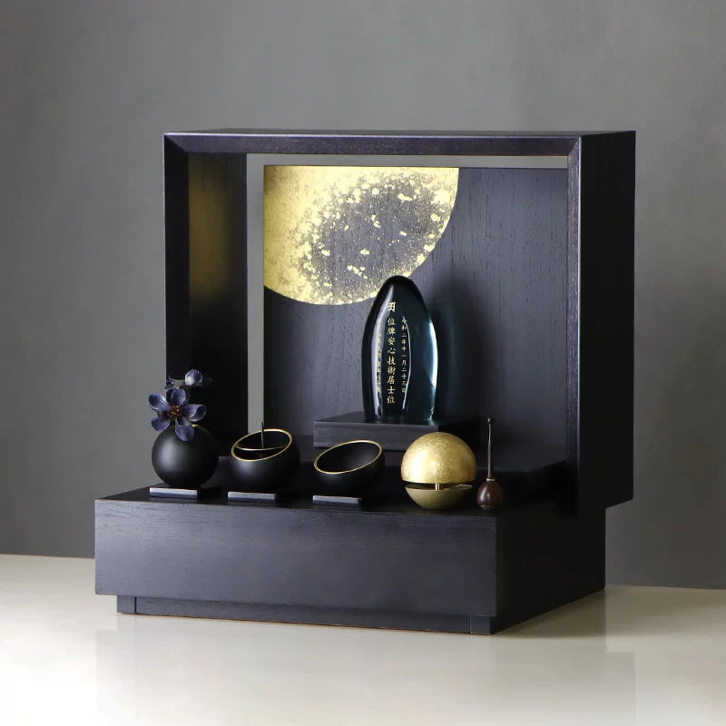 石川県金沢市の国内最大手金箔メーカー「箔一」とコラボした当店オリジナルのミニ仏壇。 深みのあるブルーブラックに月模様が浮かび上がる、幻想的でモダンなデザインです。