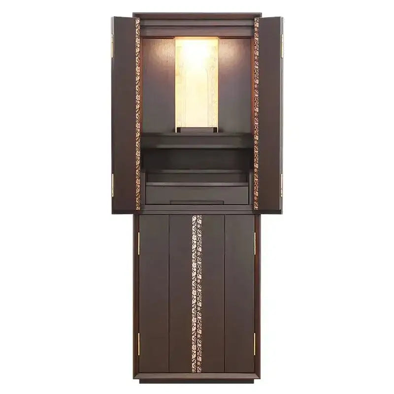• 特 徴: 国産品 、 LEDライト 、 蒔絵技法 、 柾目の直線が多めの木目 、 本尊台あり 、 スライド式内部段 、 引き出し収納 、 経机付き 、 床置きタイプ 、 セット仏壇の仏具シュミレーションあり