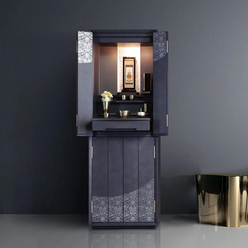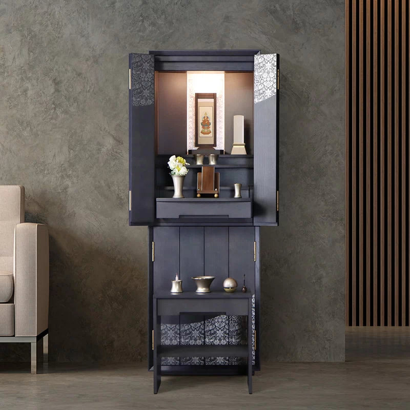 • 特 徴: 国産品 、 LEDライト 、 蒔絵技法 、 柾目の直線が多めの木目 、 本尊台あり 、 スライド式内部段 、 引き出し収納 、 経机付き 、 床置きタイプ 、 セット仏壇の仏具シュミレーションあり