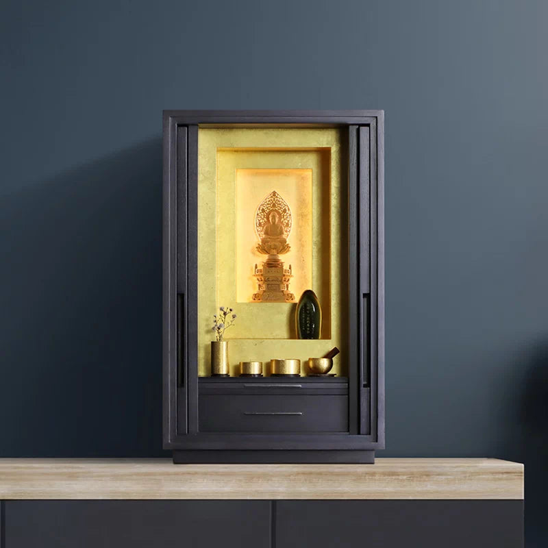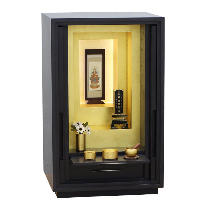 金箔を贅沢に使用した最高級のデザイナーズ仏壇。シンプルで洗練された祈りの空間を演出します。