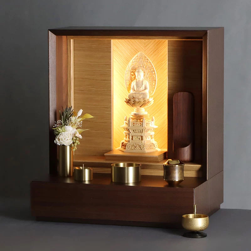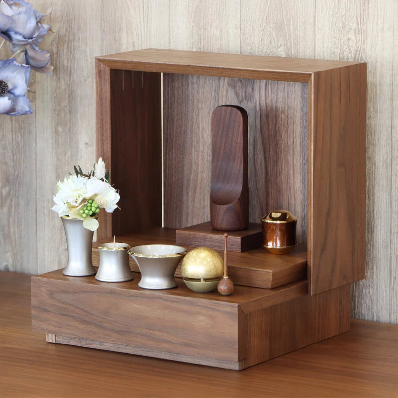 手元供養をするからこの形状のお仏壇でなければいけないということはありません。手元供養のされる方に人気の「ミニ仏壇」でも良いですし、通常のお仏壇の中に入れて頂いても大丈夫です。全骨を自宅で供養していく予定の場合は「下部に納骨が可能な床置き仏壇」や「納骨が可能な仏壇台・家具」などを設けることをおすすめいたします。