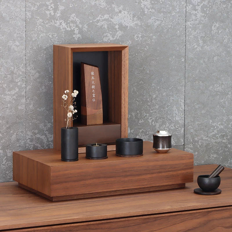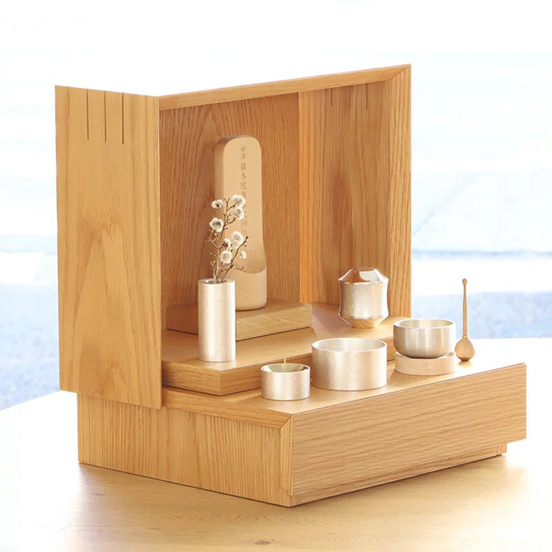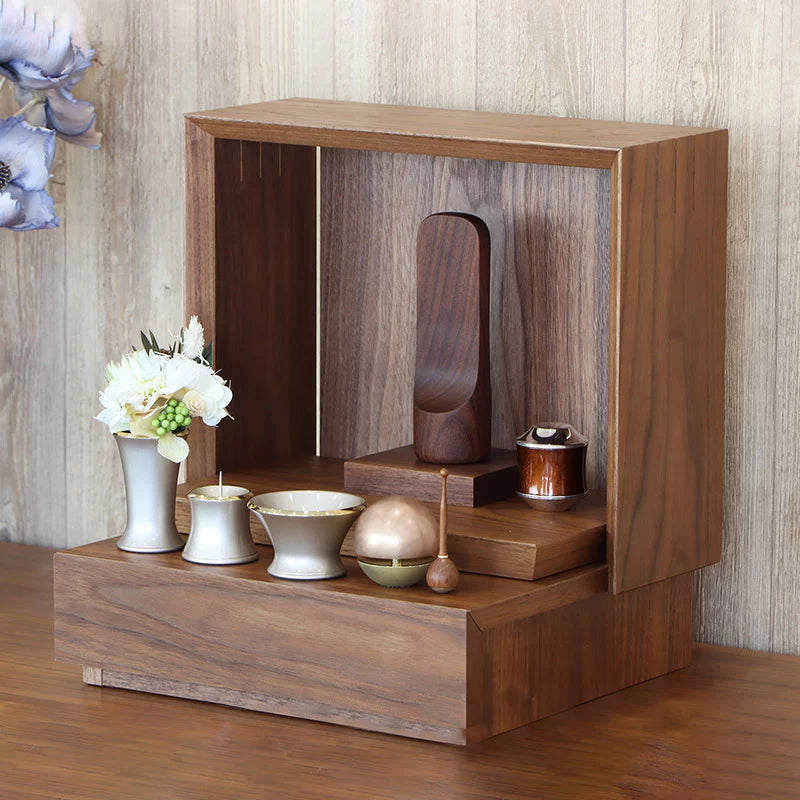 • ご本尊とお位牌を設ける場合:故人様のお位牌のすぐそばにミニ骨壺を飾り、お飾りするのが自然でしょう。