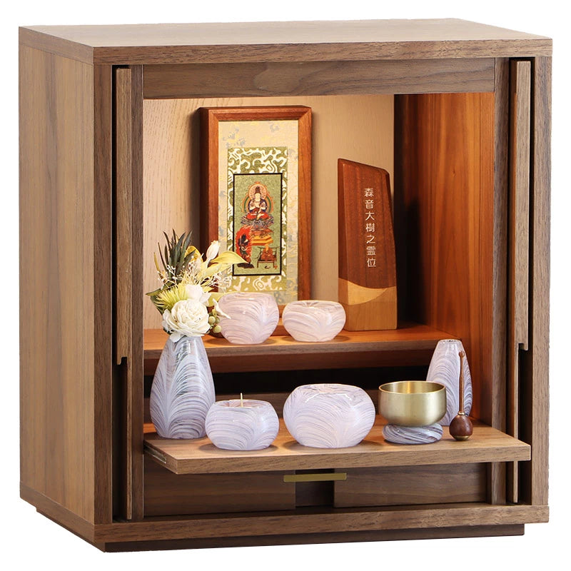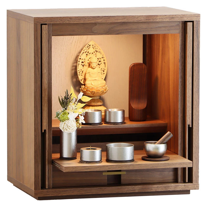 モダン仏壇 TSUDOU ウォールナット×錫色