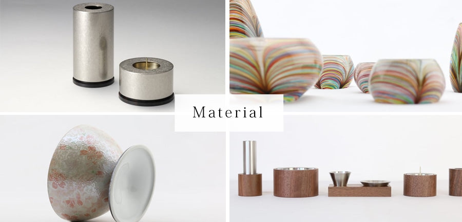 有料オプションでコースター(リン台)も各種お選びいただけます。やさしい木目がリンのカラーを引き立てます。※リン台はなくてもご使用には差支えございません。