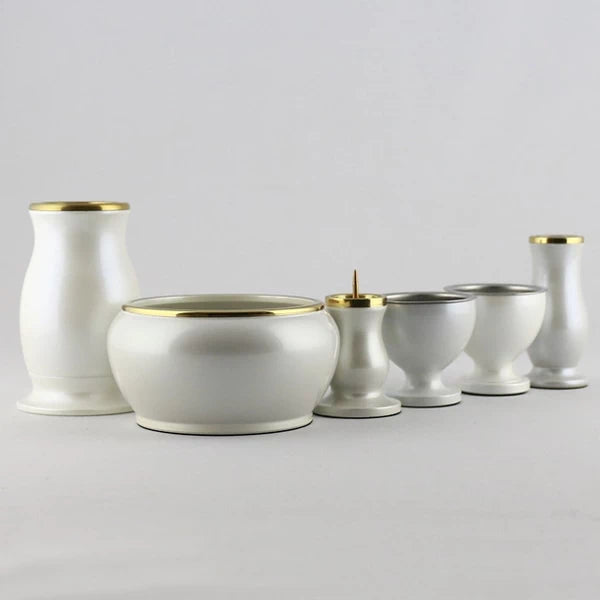 真鍮材でできた仏具の人気シリーズの仏具セット。フェミニンでかわいらしいホワイト色。