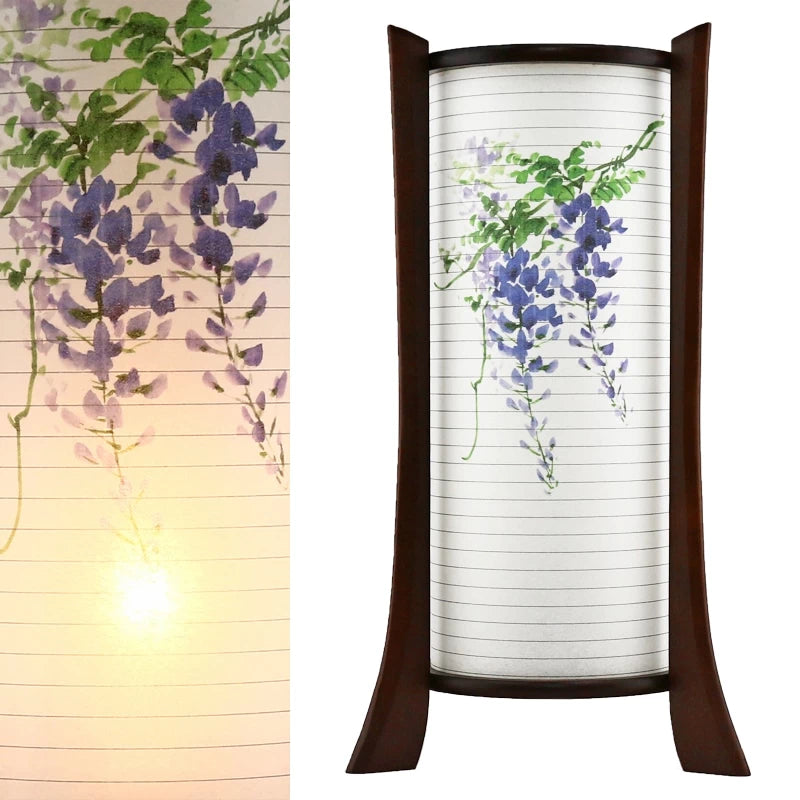 藤の花が創る上品な空間。熱電球の温かみある光が和紙を通してふんわりと灯ります。お盆の時期だけでなく通年ご使用いただけるデザインの行灯です。