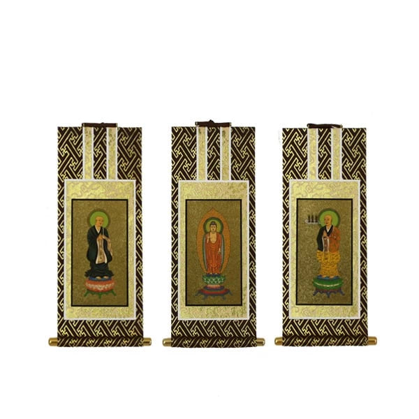 従来型の掛け軸タイプのミニ仏壇用のご本尊・脇侍です。