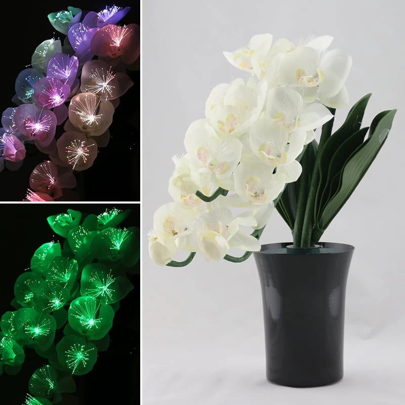 LEDで胡蝶蘭が華やかに光り、色が変化する霊前灯です。お仏壇や祭壇、お盆飾りに最適。本動画では、LEDライト点灯時の美しい光の変化をご紹介しています。
