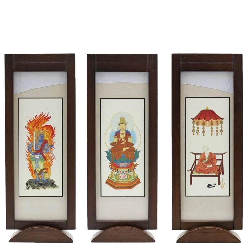 スタンド型掛け軸「遥」ウォールナット色 中サイズ 【各宗派対応】:脇侍2枚セット / 真言宗智山派・豊山派