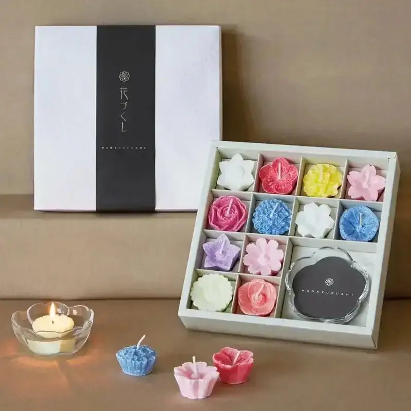 一月から十二月の季節を代表する花々を、ローソクにして詰め合わせました。色とりどりのローソクには甘い花の香りがついており、季節の花の香りもお楽しみ頂けます。
