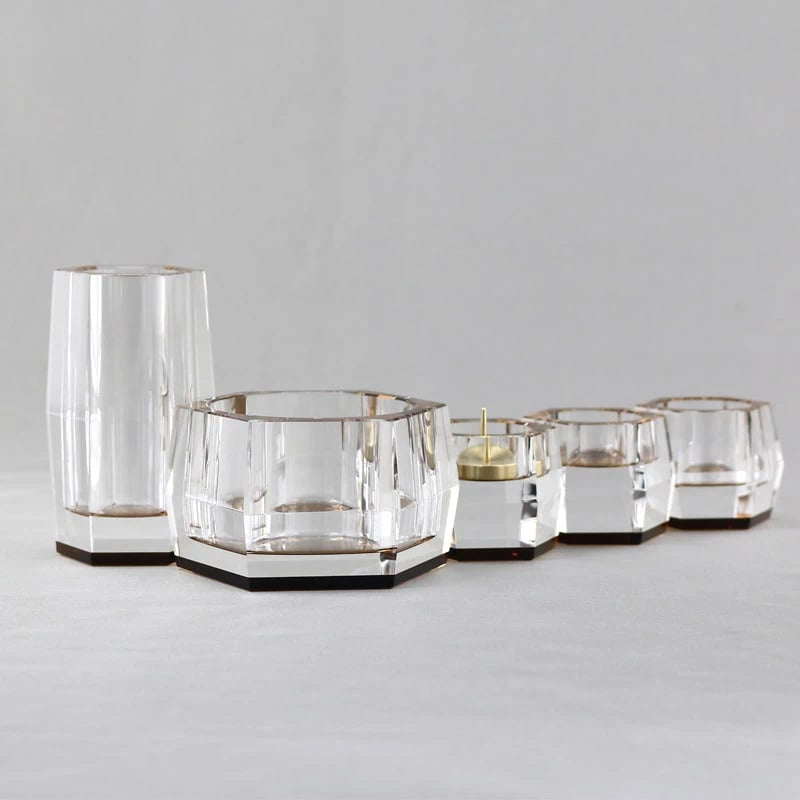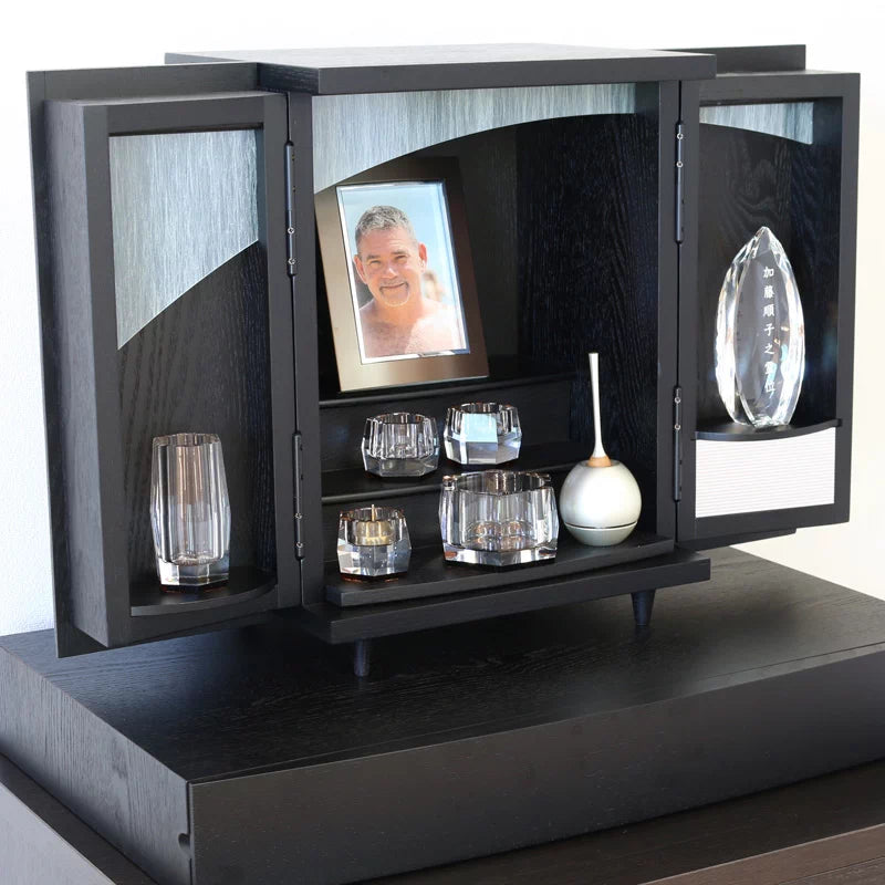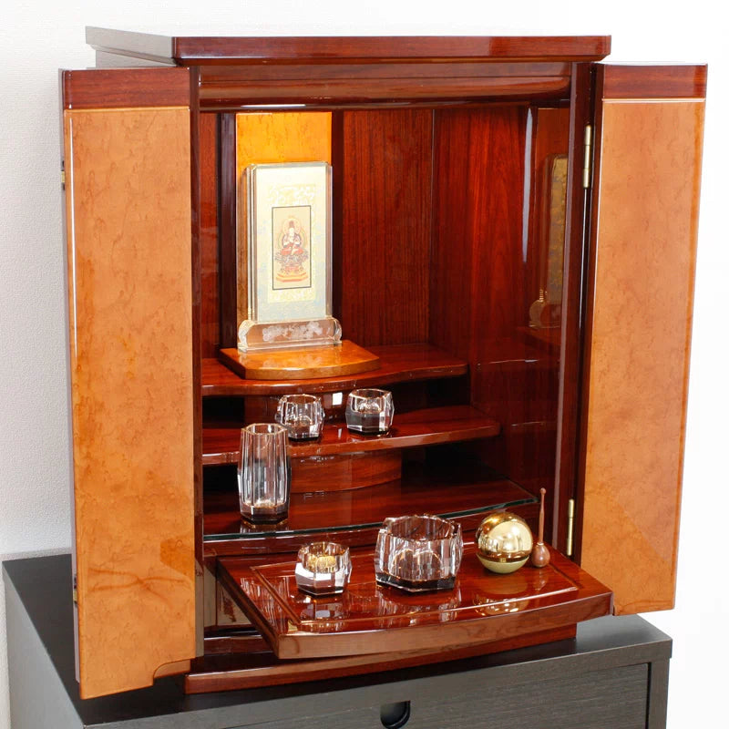 モダン仏壇をスタイリッシュで高級感のある空間に変えてくれるクリスタル仏具シリーズ。お仏壇に合わせやすいブラウン色はシリーズ内でも人気の高いカラーです。