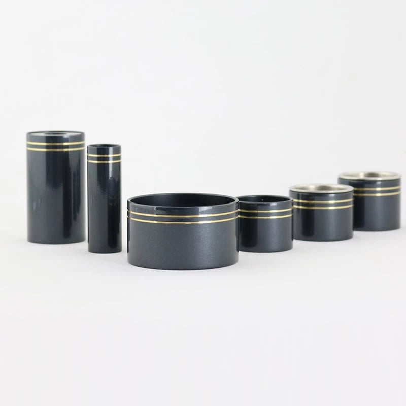 コンパクトなサイズ感で小さいお仏壇に合わせやすい仏具シリーズ。深い色合いのネイビー色です。