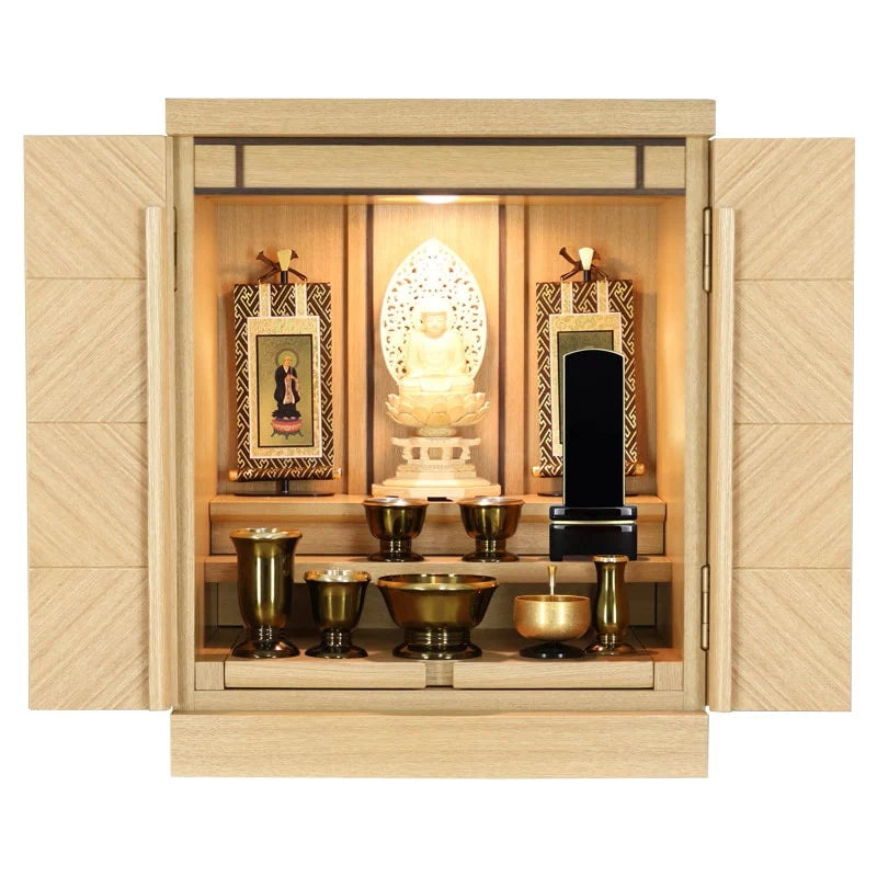 仏具によって荘厳(しょうごん)して初めてお仏壇としての意味を持ちます。仏具はご本尊を供養するのと共に、ご先祖様や亡き人を供養するためのものです。