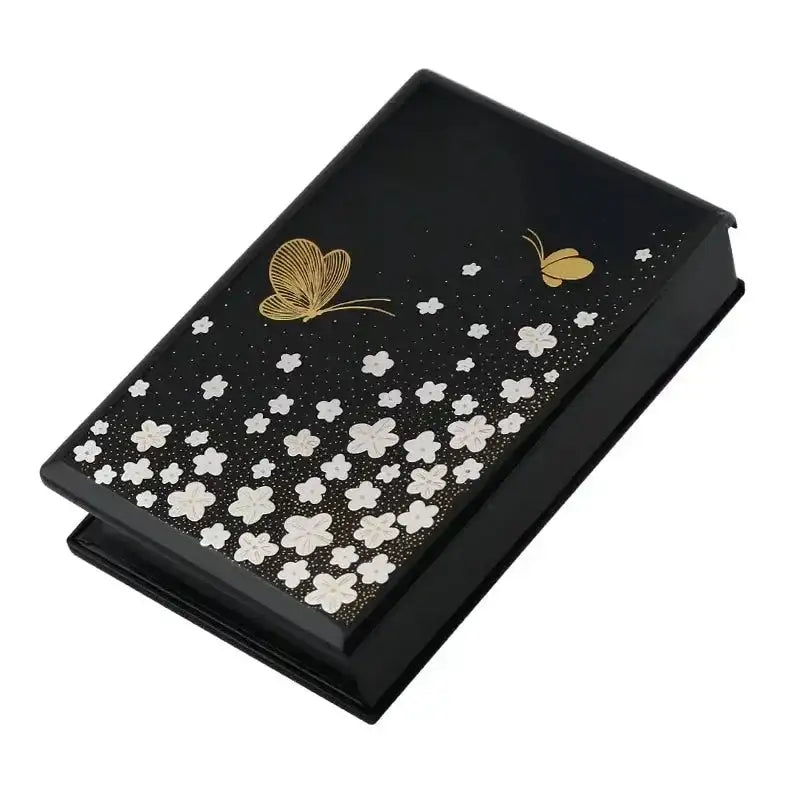 持ち運びも可能な携帯型位牌。暖かい季節を感じる、花に集まる蝶々の手書き蒔絵。