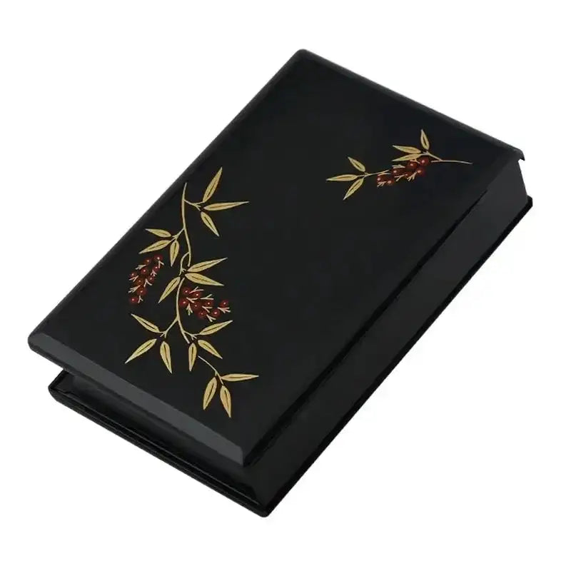 持ち運びも可能な携帯型位牌。「私の愛は増すばかり」という花言葉をもつ南天の手書き蒔絵。