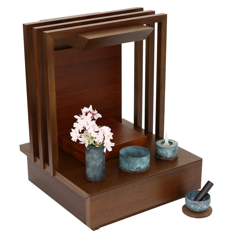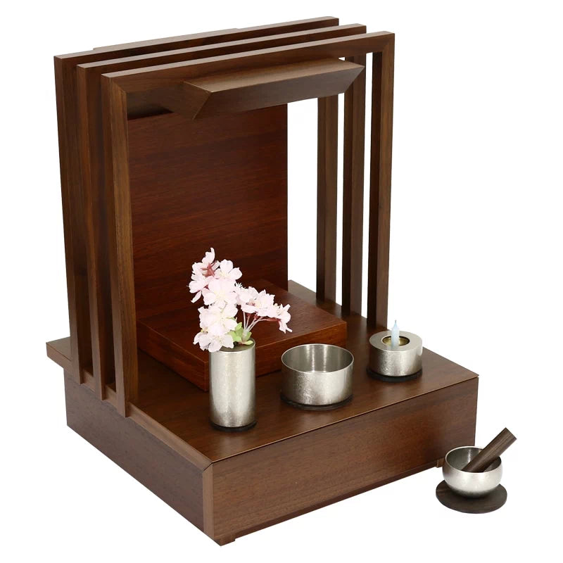 こちらのミニ仏壇は、通常のお仏壇のように本尊も飾り、お位牌も飾るというような飾り方ではなく、お位牌だけを飾ったり、ミニ骨壺だけを飾ったり、などの手元供養用のお仏壇としての飾り方をオススメ致します。