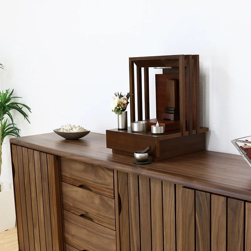 • 特 徴: 国産品 、 タッチ式LEDライト 、 引き出し収納 、 柾目の直線が多めの木目 、 セット仏壇の仏具シュミレーションあり 、 台の上に設置するタイプ 、 本尊台あり