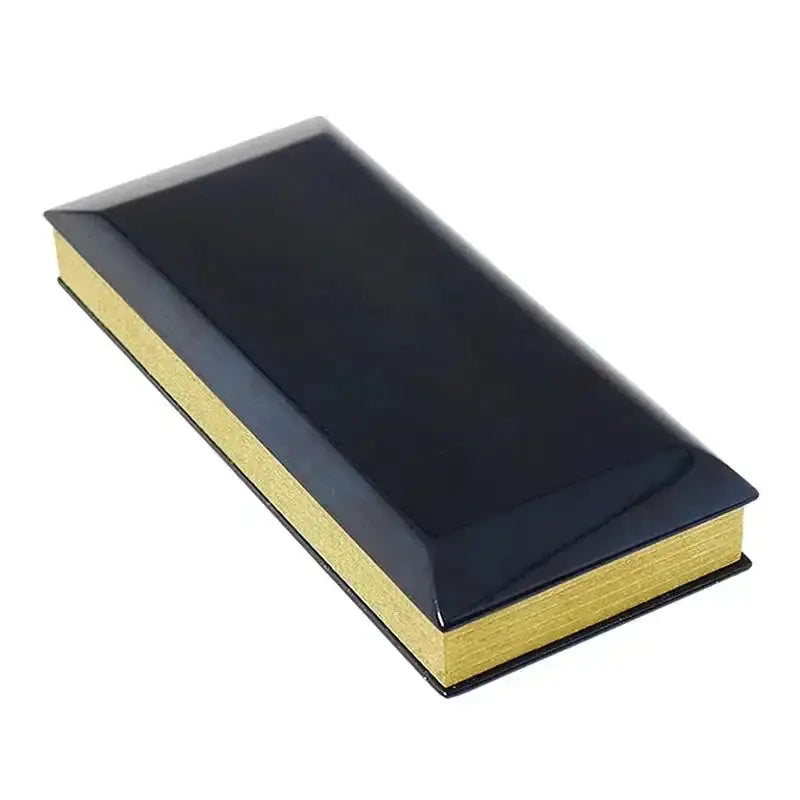 過去帳の側面には金箔が貼られます。目的としては紙の劣化を抑えることと見た目の装飾のために行われます。これは最初は綺麗ですが、開け閉めをすることで金箔は少しずつ自然に取れていくものとなります。当店では検品時に中の紙に問題が無いか細部までチェックしております。なので、検品時に少し金箔は剥がれますので、予めご了承ください。