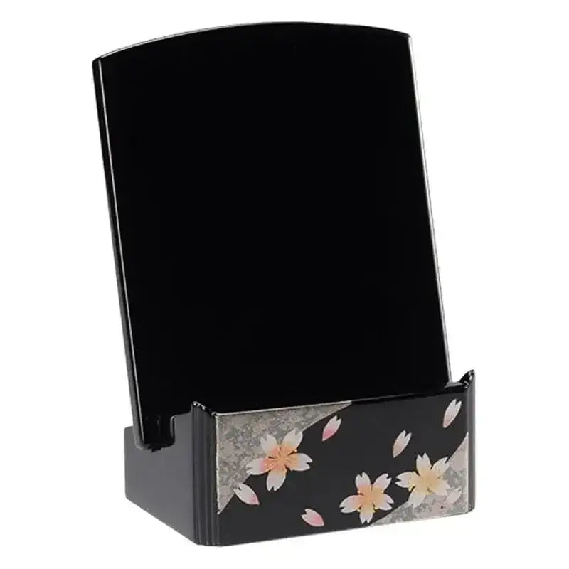 美しい箔散桜(はくちらしさくら)の蒔絵が入った見台です。見台は過去帳を飾る際の置く台です。歴史ある会津で作られた高品質の見台で趣のある蒔絵はお仏壇を華やかに飾ります。