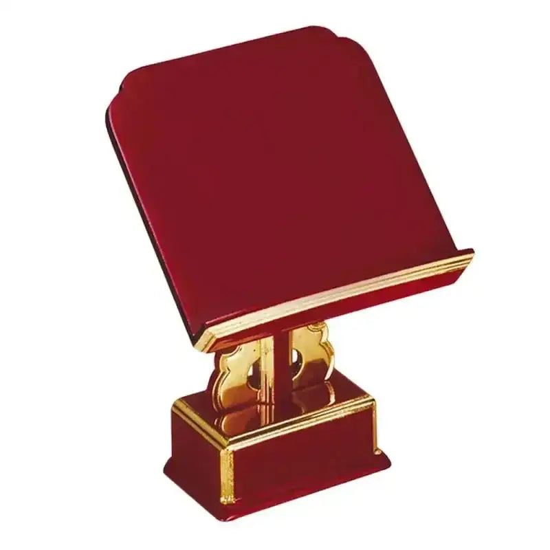 一本足タイプの伝統的な形の見台です。見台は過去帳を飾る際の置く台です。面金仕上げで縁に金を施し、お仏壇を華やかに荘厳致します。
