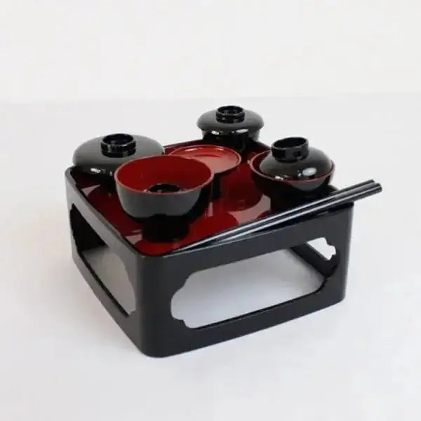 仏膳セット PC黒(内朱) お椀並べ方印刷付:7.0寸